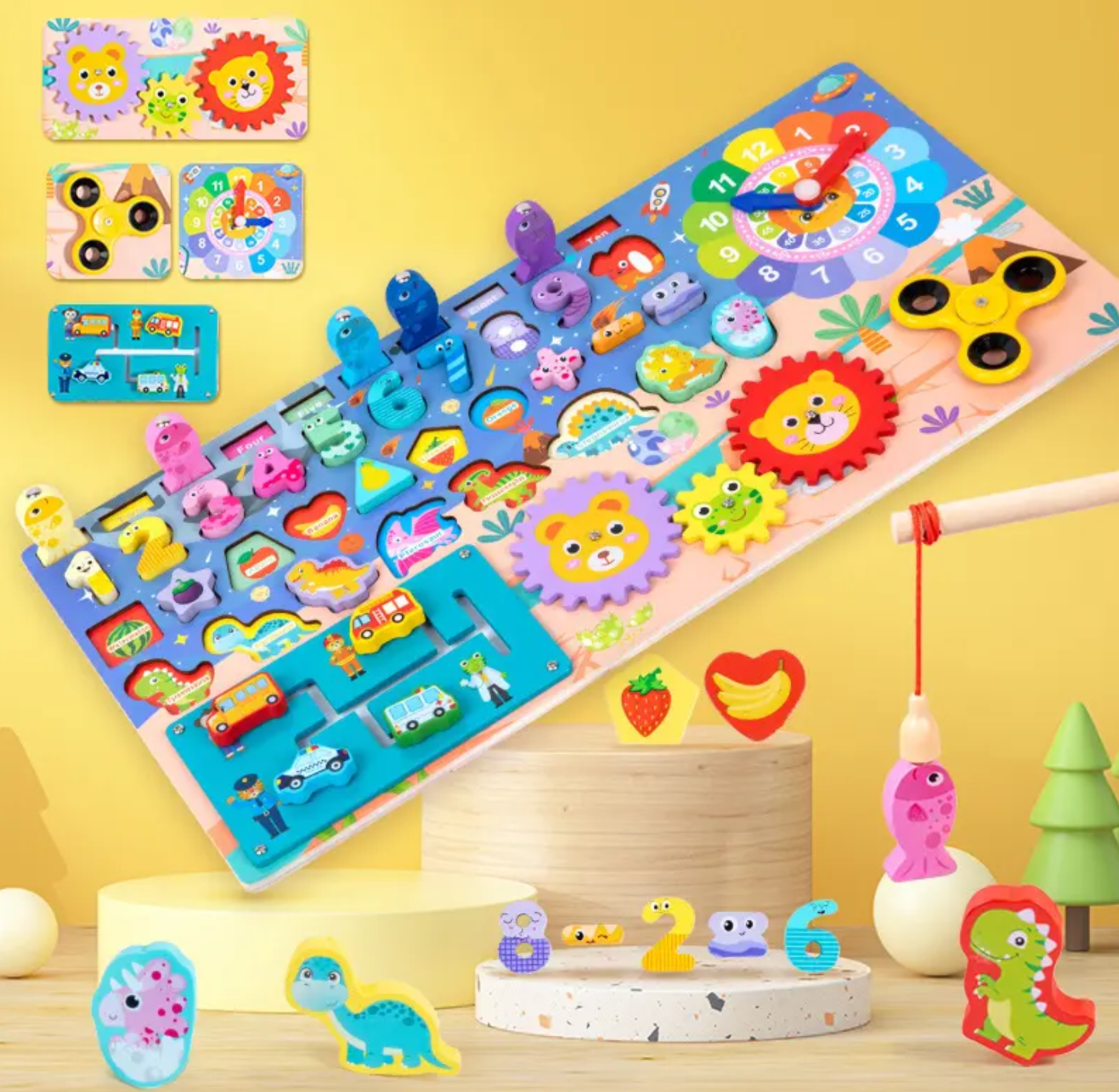 Joc Logaritmic Multifuncțional 8 în 1 DOL – Dinozauri, Fructe, Cifre, Ceas, Spinner, Vehicule