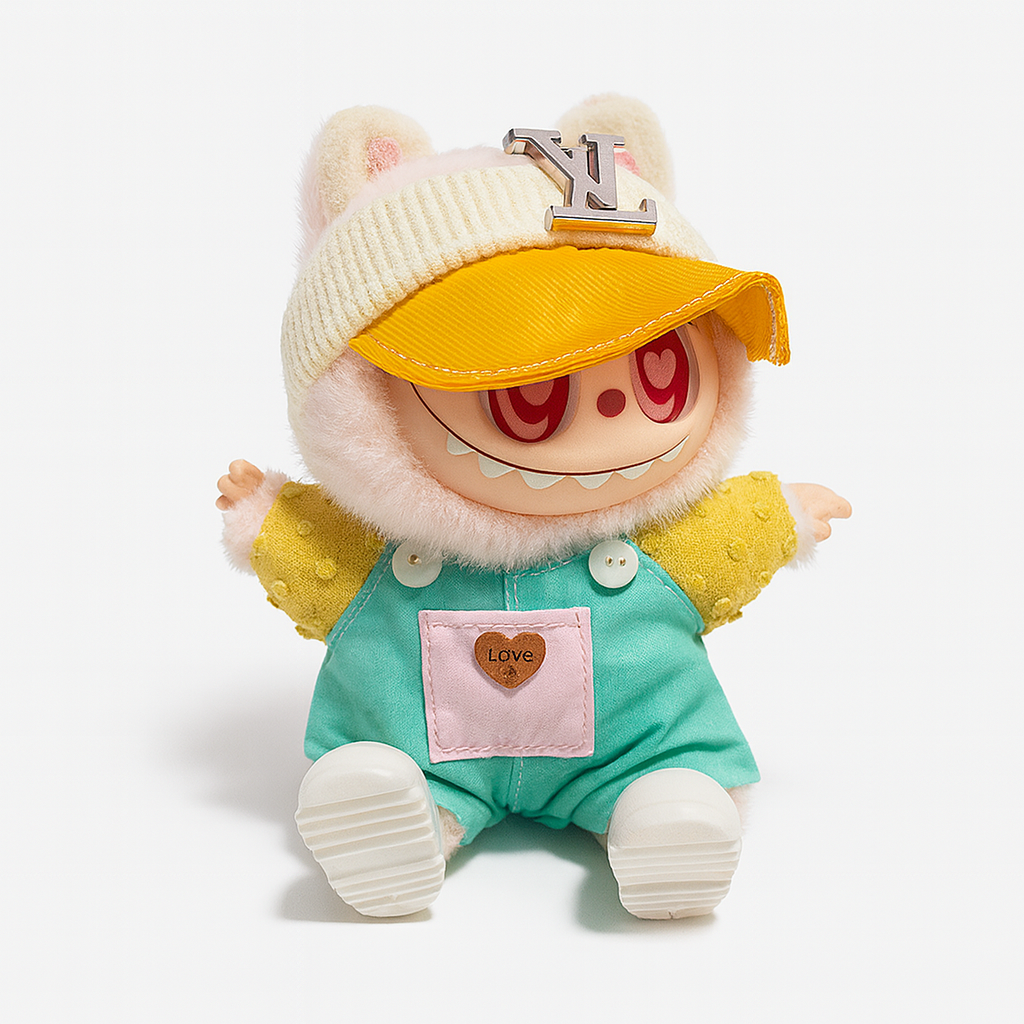 😍 Transformă fiecare ieșire într-o declarație de stil cu simpatica papusă Labubu de 15 cm, gata de aventuri și selfie-uri fashion! Această jucărie de pluș cu șapcă streetwear și salopetă turcoaz aduce instant zâmbete și culoare în viața celor mici. 🌟